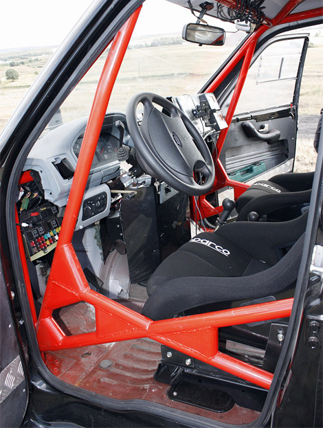 Кроме того, у гоночного пикапа была расширена колея, усилена рама, появились спортивные амортизаторы, каркас безопасности, а вместо заднего "дивана" установлен 400-литровый бензобак. Плюс, навигационные приборы и система оповещения при обгоне в условиях плохой видимости - такими устройствами оснащаются машины, участвующие в ралли-рейде.